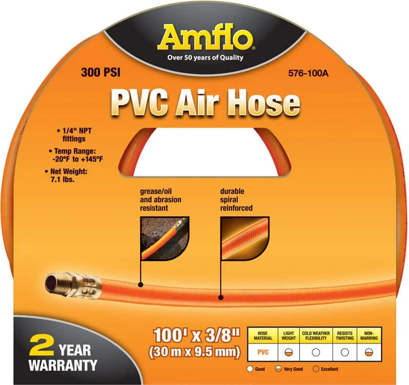 Amflo 100 Ft. L X 3/8 In. D Polyvinyl Air Hose 300 Psi Orange