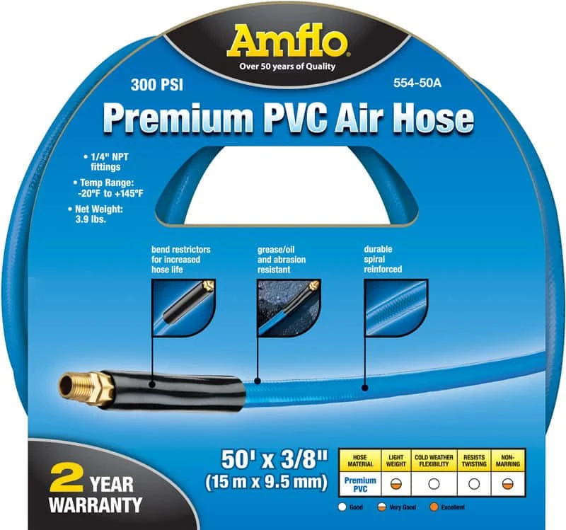 Amflo 50 Ft. L X 3/8 In. D Polyvinyl Air Hose 300 Psi Blue