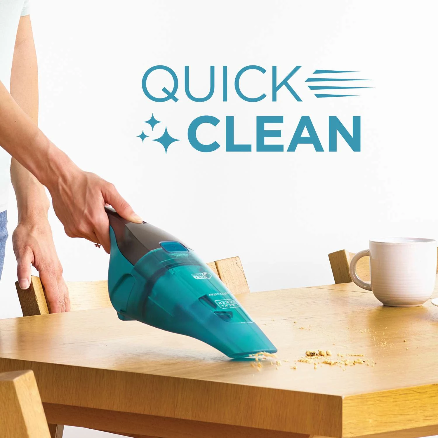 For dry debris and wet messes alike, this Black & Decker cordless hand vacuum never lets you down. Lithium technology and the transparent bagless dirt bowl makes cleaning fast and easy. Just empty, rinse, and go. Designed for quick, + easy cordless cleaning for both wet and dry messes Ideal for quick clean ups and spills Lightweight + portable design makes this easy to use Included wall mountable charger allows for 1 step charging and storage Washable bowl + filter allows for thorough cleaning The translucent, bagless dirt bowl makes it easy to see the dirt level and is easy to empty