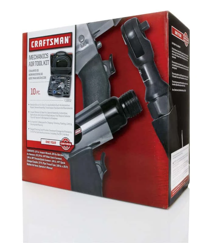 | What's Included | 1/2 in. impact wrench, 3/8 in. ratchet wrench, 3/8 in. air hammer, 25 in. air hose, 4 nozzles, an air hose connector, a PTFE thread seal |