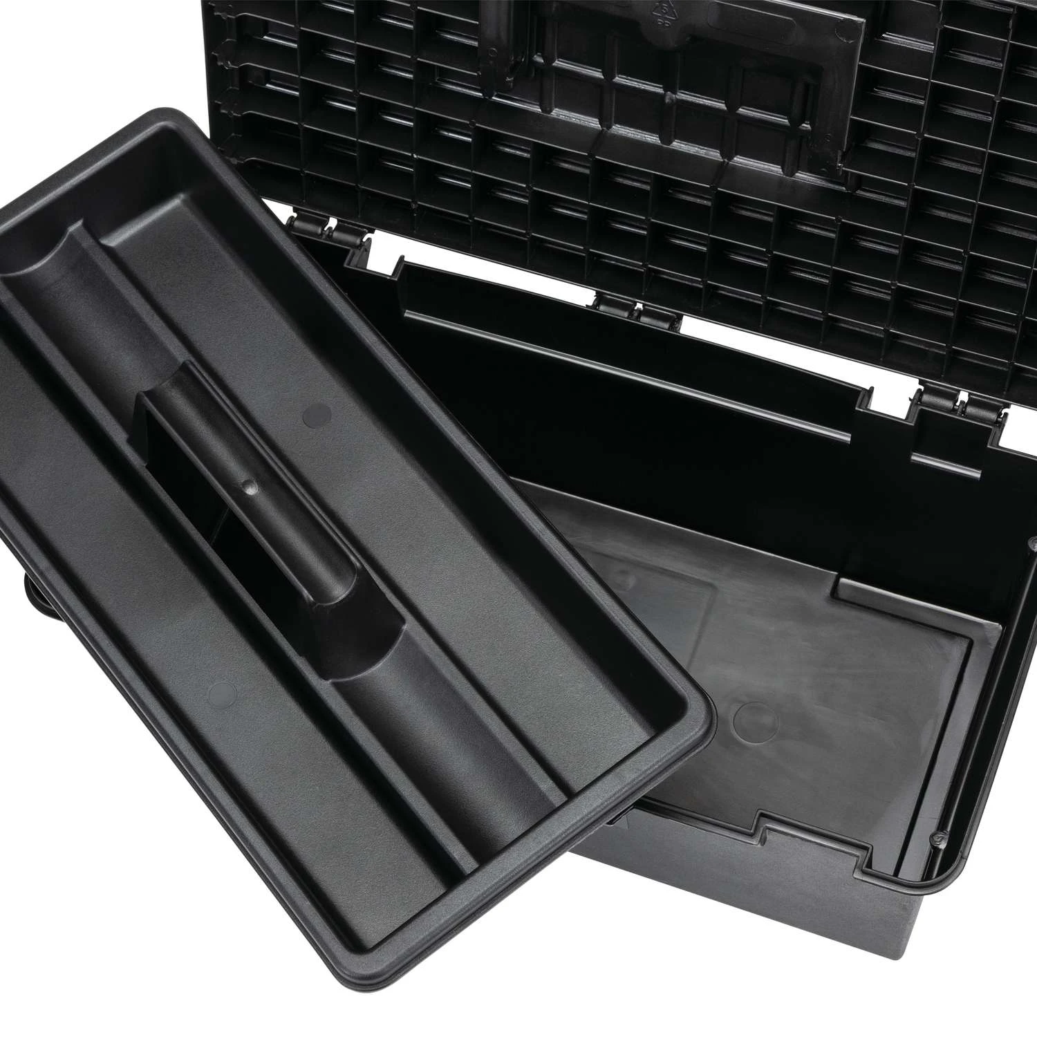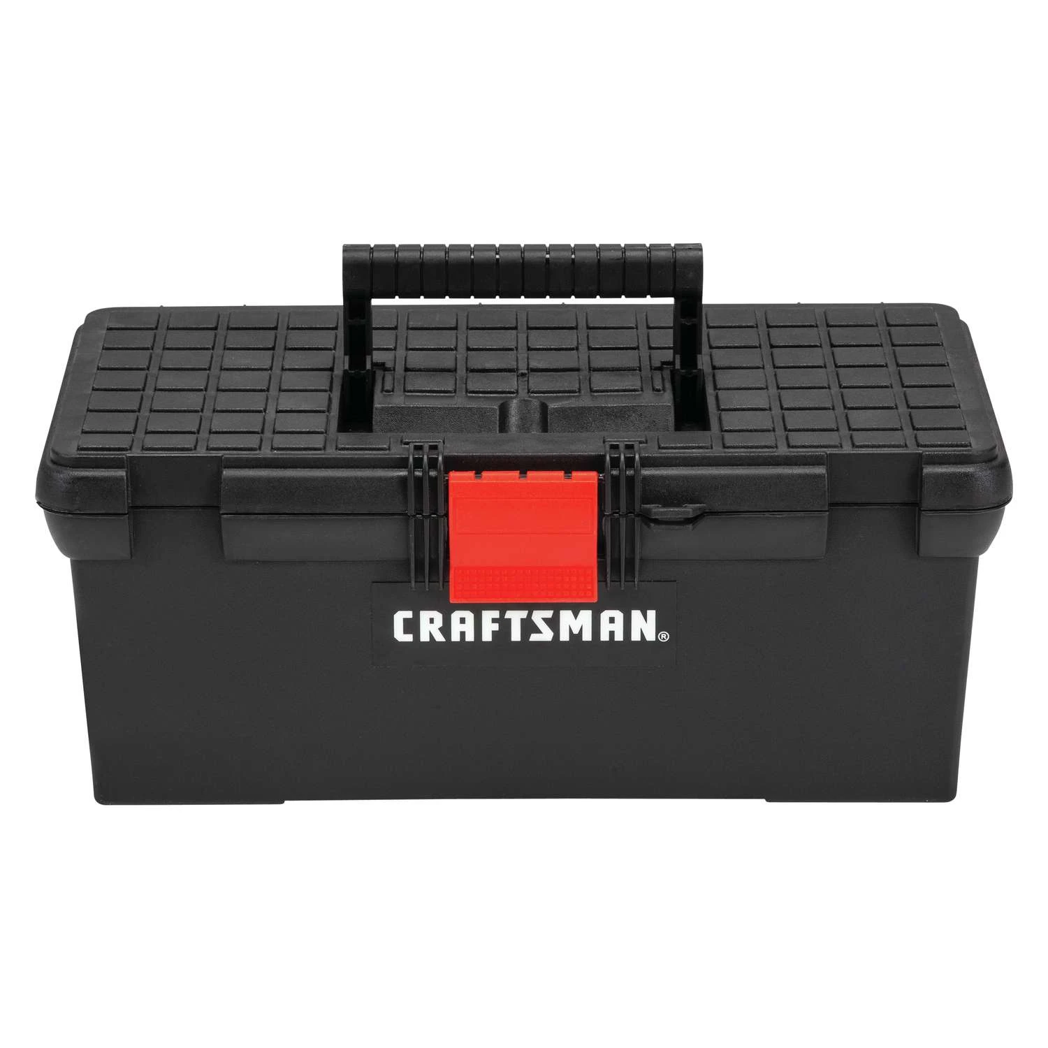 Keep your supplies neat, organized and in one central location for easy access with this Craftsman 16-in. Toolbox. It’s made of a sturdy material and comes pad lock ready (sold separately) for added safety. This plastic tool box has a spacious interior that you can use to hold a hammer, measuring tape, screwdrivers, a wrench and more. Safeguards your tools – pad lock eye Added comfort – comfort grip handle for ergonomic hold Front metal latch for added security Added storage – portable tray inside for hand tools Convenience – easily move from home to job