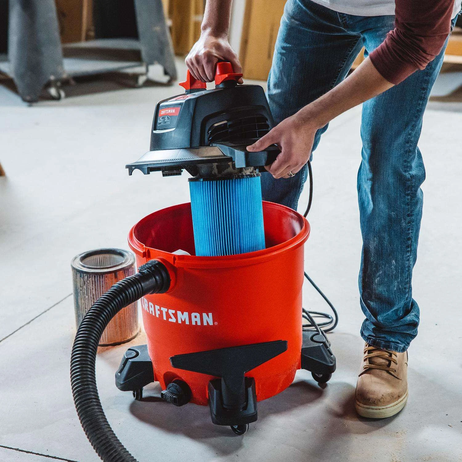 The CRAFTSMAN Fine Dust Filter 2 pack for wet/dry vacs is designed to tackle job cleanups like mold, cold ashes, and everyday dirt like sawdust, wood chips, jobsite debris and car or truck dirt. This efficient 3-layer cartridge filter helps reduce blockage. Removing and installing wet/dry vacuum filters is quick, easy and secure. For added convenience, the filter material can be washed with water and reused once fully dried. Compatible with all current CRAFTSMAN shop vacs 5 gallon and larger. This bundle allows you to be prepared for a variety of projects. Regularly replacing the filter helps ensure maximum performance and enhances the life of your wet/dry vac. For wet pickup, use the CRAFTSMAN Wet Application Filter (CMXZVBE38773; sold separately). FITS: 5 gal. to 20 gal. CRAFTSMAN vacs made 1988 and after 3-LAYER MATERIAL: 3 layers of pleated material captures everyday dirt and fine particles TRAPS FINE DUST: Replacement cartridge filter designed for dry pickup such as sawdust, mold, and cold ashes OPTIMAL VAC PERFORMANCE: Replacing filters often help maintain suction power and extend the life of the vac EASY INSTALLATION: The Qwik Lock allows quick and easy wet/dry vac filter changes COMPATIBLE WET/DRY VACS: CMXEVBE17925, CMXEVBE17584, CMXEVBE17590, CMXEVBE17155, CMXEVBE17594, CMXEVBE17595, CMXEVBE17607, and CMXEVBE17596 CRAFTSMAN Shop Vacuums *