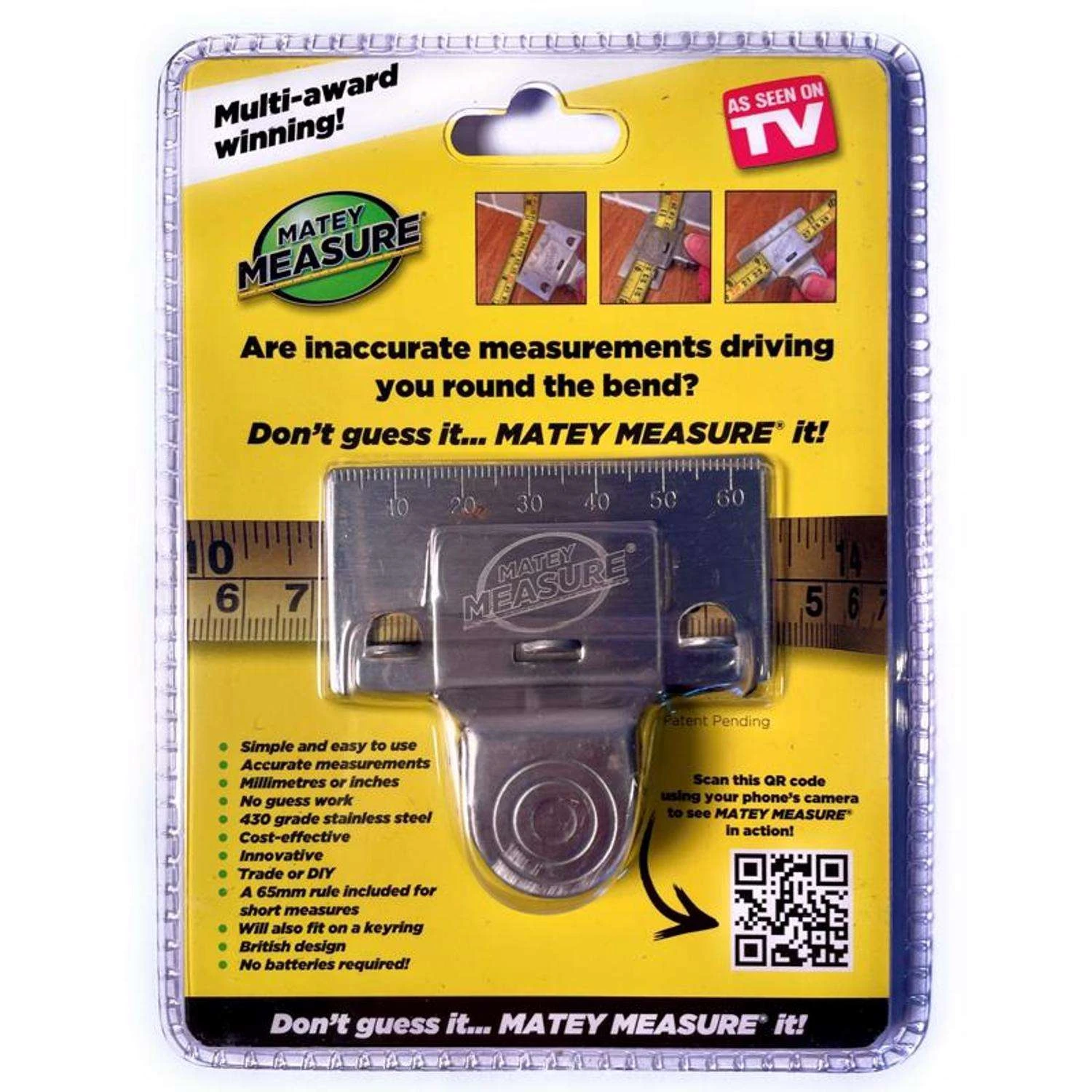 All tape measures bend when using them in an internal recess, not providing an accurate measurement, meaning a guess would have to do. To ensure all measurements are accurate, Matey Measure squares off the curve to allow for quick and easy precise measurements. A bonus feature is a 65mm rule on the front edge. Made from sturdy 430 grade stainless steel for long lasting wear in the toughest conditions Simple and easy to use and is great for the DIY homeowner or professional tradesmen Use on standard metal tape measures any length