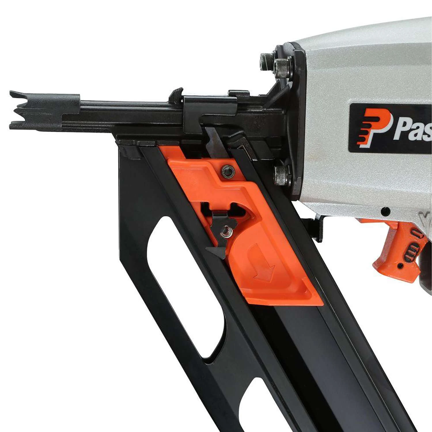 The Paslode Pneumatic 30 deg. Compact Framing Nailer is designed specifically with remodelers in mind. Get the access and maneuverability you need in tight spaces with this lightweight, yet powerful, pneumatic nailing system. When used with Paslode nails, this nailer experiences fewer jams and misfires which means less downtime. The Paslode Compact Framing Nailer System makes remodeling easier. Great maneuverability to get in the tightest spaces. Works in bump mode for speed on job site. Soft grip handle for comfort. Includes compact 30 degree framing nailer, safety glasses and owners manual.