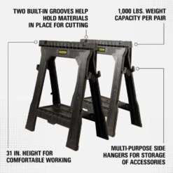 Stanley 31-1/8 In. H X 29-1/8 In. W X 2-7/8 In. D Adjustable 2 Way Adjustable Sawhorse 1000 Lb. Cap.