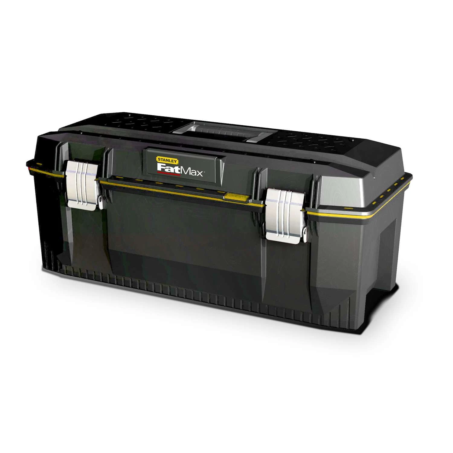 Carry power tools, hand tools, gear and other medium-to-large items in this heavy-duty Fatmax structural foam water resistant tool. Structural foam consists of thermoplastic resin and flake mica that increases structural durability. The 28 inch tool also features a soft-grip handle for comfortable carrying and a patented water-tight seal to protect your equipment. V-groove with ruler on top of lid holds materials such as lumber and pipes in place for cutting Portable half tray allows room for storage of larger items Extra-heavy-duty, professional toolbox Patented water seal makes toolbox water resistant Ideal for carrying power tools, hand tools, and medium to large items Structural foam consists of thermoplastic resin and flake mica that increases structural durability Black
